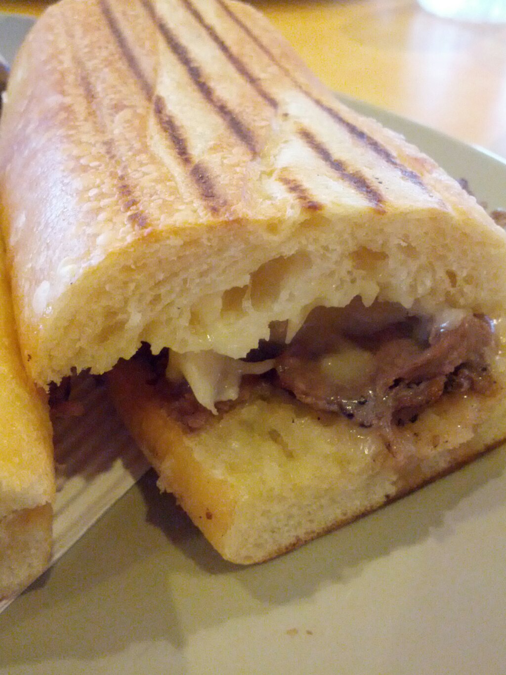 We jump in the car after a day of work & activities ready to go home. The traffic – atrocious. The tummies – rumbling. So we hang a u and drive to Panera Bread Co. Where I order this tasty steak and white cheddar pannini. Crusty bread, medium well steak and gooey cheddar cheese. Traffic: I don’t mind.