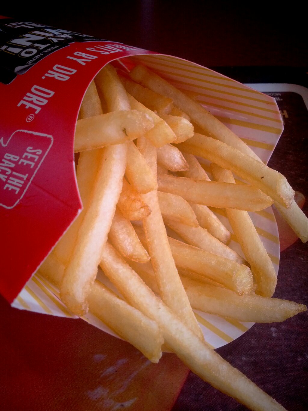 This is, by far, my favorite thing on the McDonald’s menu. Golden, straight cut fries right of the grease and onto my tray. Crisp on the outside with a more mealy potato texture inside. Thanks to an article I read somewhere on getting great fresh fries anywhere, I simply order them without salt. They come out of the fryer still glistening from the oil. i absolutely hate “heat lamp” fries with their limp texture. Biting into one is so disappointing. But these, no regrets.