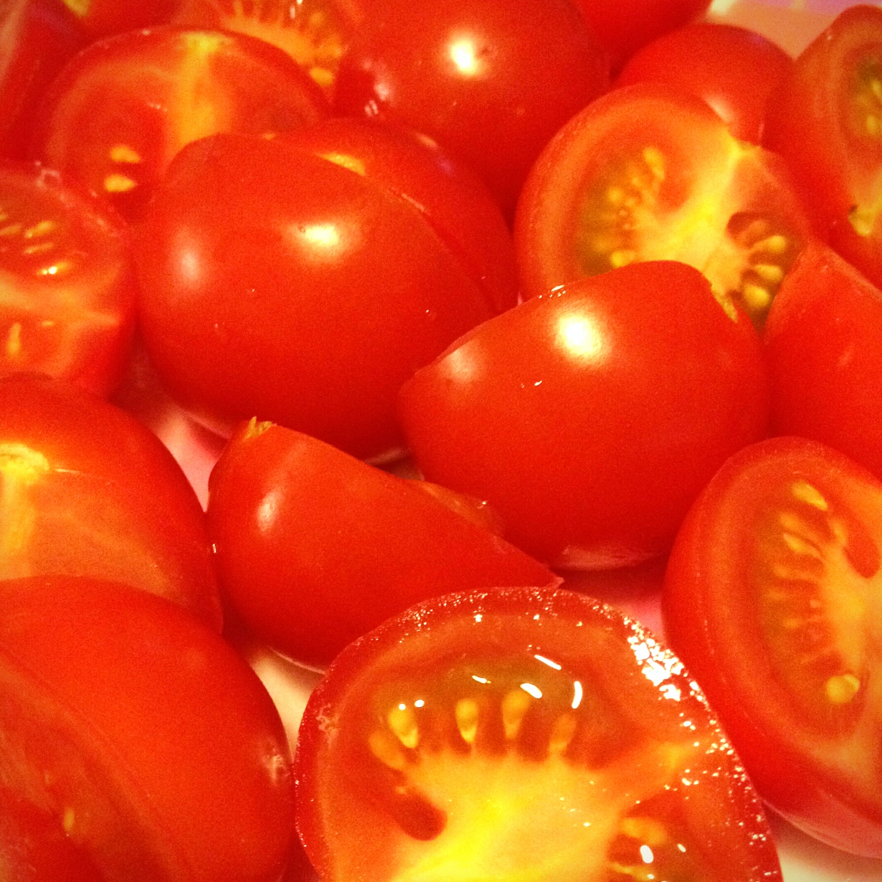 So after a rather long commute and a trip to the grocery store, I saunter into the kitchen without a hint of a recipe or a plan. The only logical thing to do is….wash the produce and prepare my pasta water. Maybe an idea will solidify as I prepare the veggies. So I wash my produce and then open the chicken to give it a good rinse as well. I put it in a bowl of salt water to wait for further action as I cut the tomatoes. When the tomatoes are done, I turn my attention to the chicken and pasta. I place about a half pound of vermicelli into the oiled and salted boiling water and I remove the tenders from the water and place them on wax paper to season. I take out the sea salt, peppercorns, cumin, and oregano from the spice cabinet and coat both sides. In my skillet I pour a healthy amount of olive oil and turn the temperature up. It is at that moment I realize that I had forgotten the garlic so I pull out 3 small cloves and quarter them and throw them in the oil. Just as they had begun to cook, I added my chicken tenders, frying them on both sides until a golden brown. Once they are done, I remove them and the garlic from the pan and place them on coffee filters to drain.